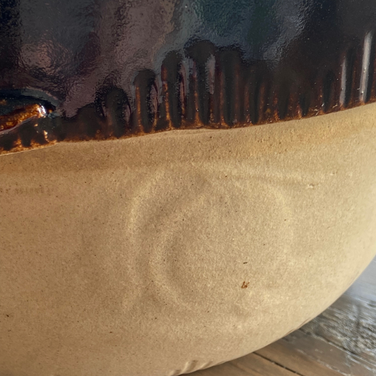 Large Vintage Stoneware Serving Bowl – Brown Glaze – Made in the USA