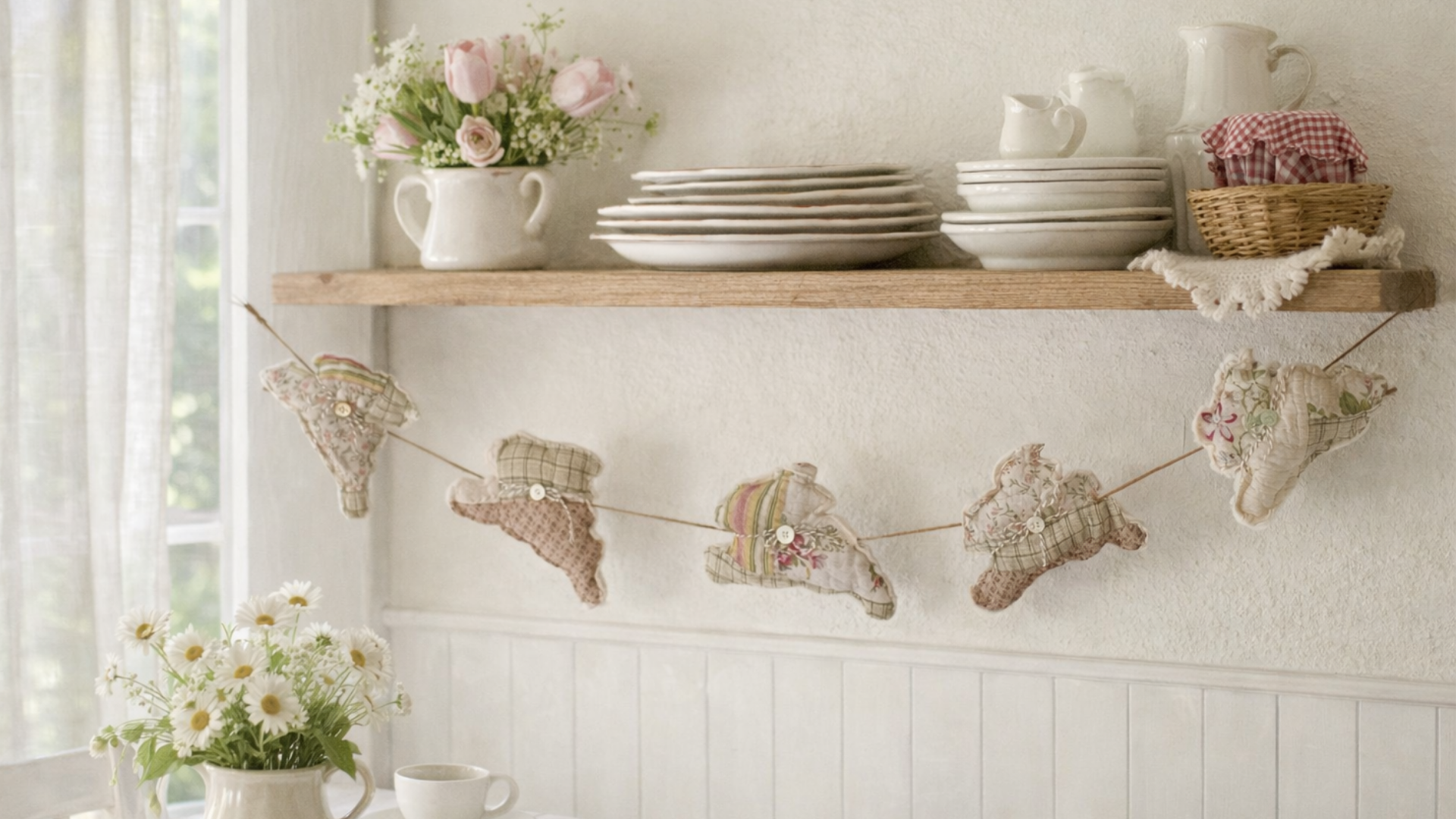 White Vintage Quilt Bunny Garland-4 ft