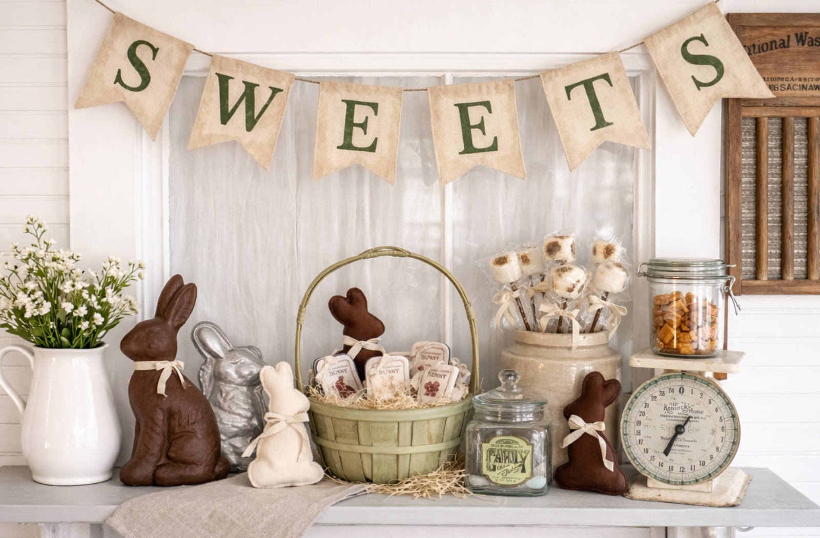 Vintage “SWEETS” Banner – Farmhouse Hand-Painted Canvas Pennant