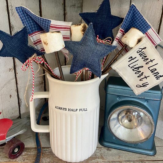 Patriotic Denim Star Wands – set of 3 Upcycled Farmhouse 4th of July Decor