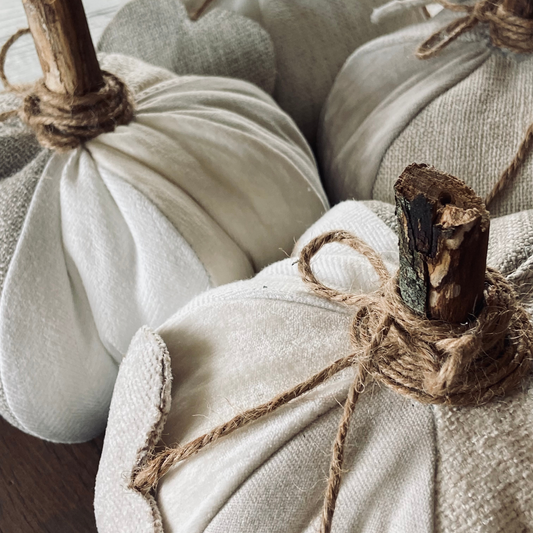 Patchwork Pumpkins from Vintage Fabrics w/Rustic Wood Stem
