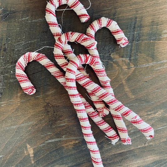 Plaid Fabric Wrapped Candy Canes for Primative Farmhouse Christmas-set of 5