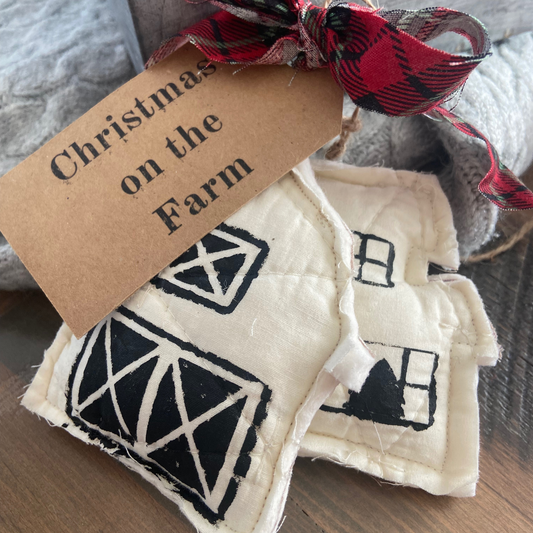 “Christmas on the Farm” Set of 2 Quilted Ornaments-Farmhouse & Barn