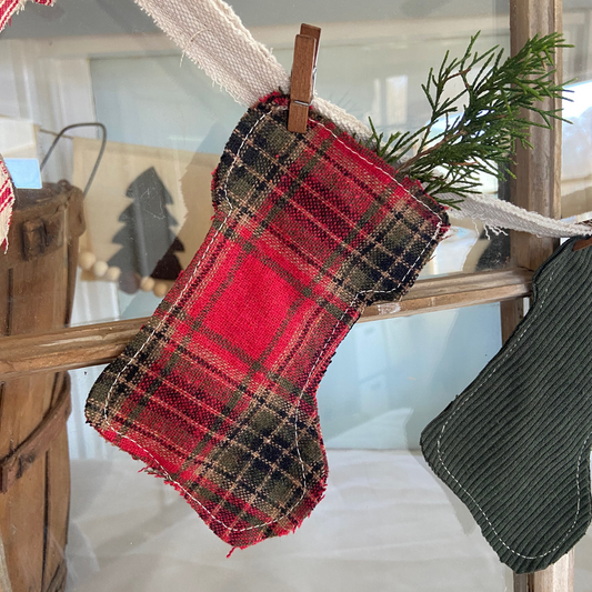 Mini Stocking Christmas Garland w/Vintage Fabric & Pins