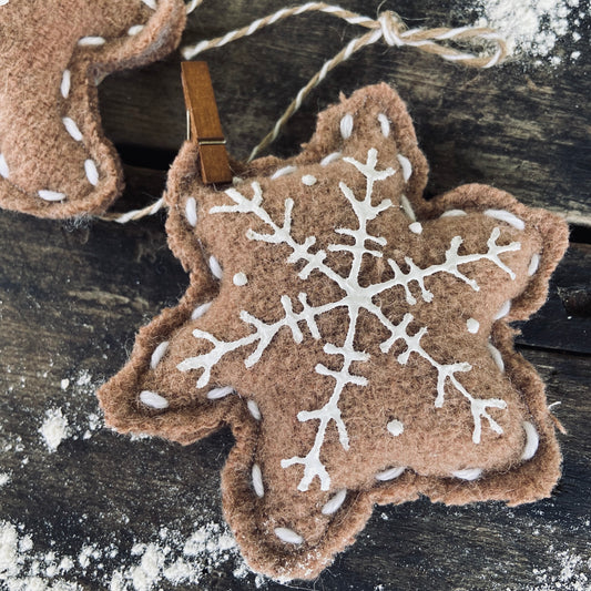Gingerbread Cookie Ornaments-set of 3 from Repurposed Vintage Wool Blanket