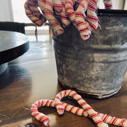 Fabric Wrapped Candy Canes in Red Striped Ticking