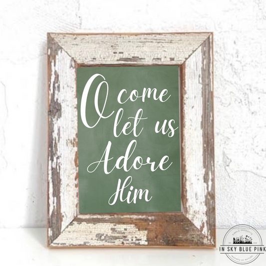 “O Come Let Us Adore Him” Chalkboard Holiday Prints & Rustic Reclaimed Barn Wood 8 x 10 Frame