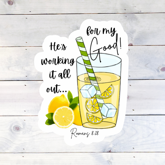 Lemonade Waterproof Sticker 2” x 3 “He’s Working it Out for my Good” Romans 8:28