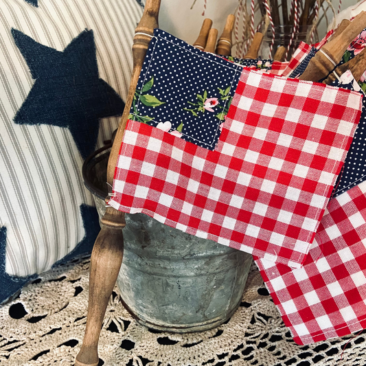 Patriotic Spindle Fabric Flags Gingham & Blue Floral & 1776