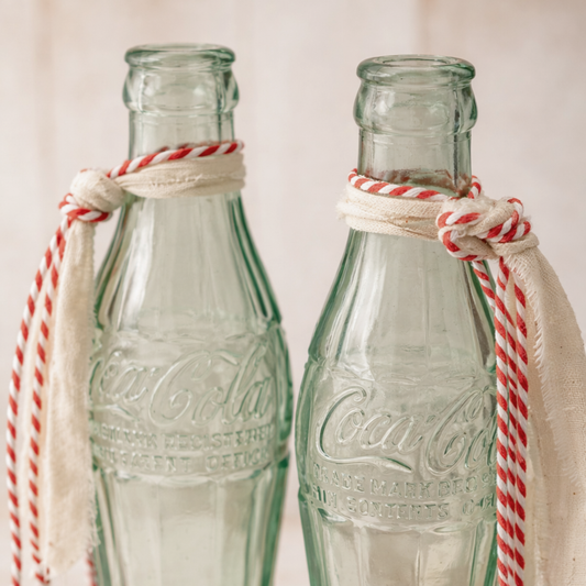 Vintage Aqua Coca-Cola Bottles – Set of Two | Soda Shop Valentine Decor