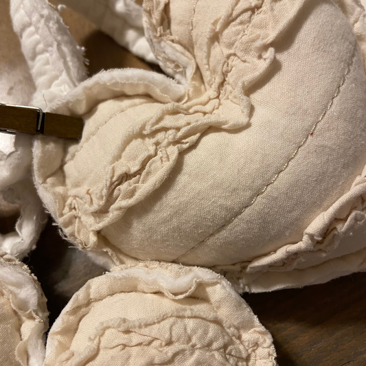 Ruffle Quilted Heart Garland Vintage Cream Quilt-4 ft