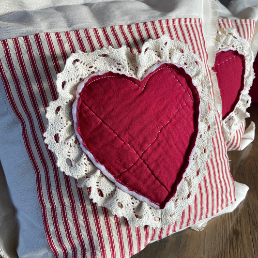 Vintage Stamp Heart Pillow – Handmade Valentine Keepsake