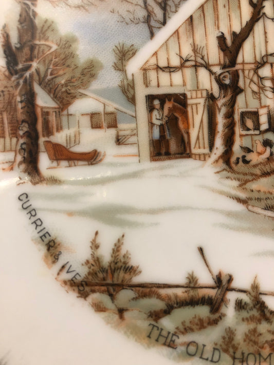 Currier & Ives “The Old Homestead in Winter”-8 in Decorative Plate For Farmhouse Christmas