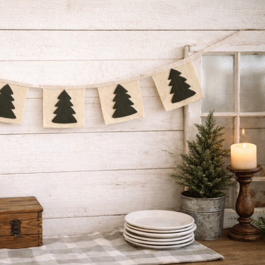 Pine Tree Banner 4ft-Vintage Wool Blanket & Soft Corduroy
