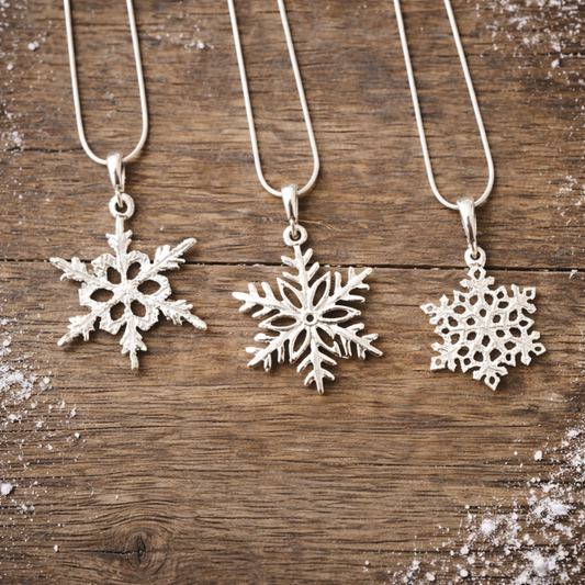 Small Pewter Snowflake Pendant w/ 26" Adjustable Rhodium Chain