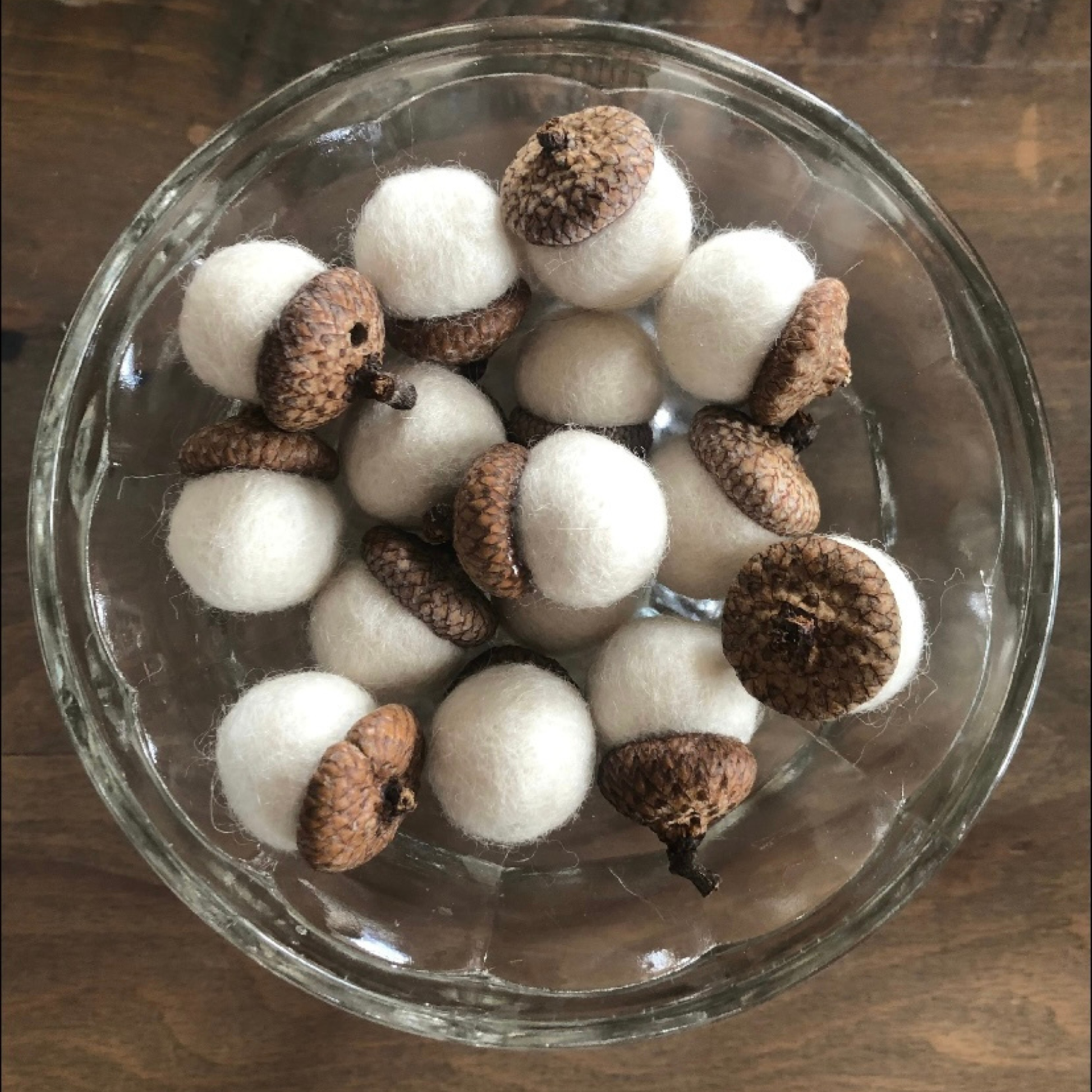 Felted Wool Acorns in Ivory-20mm with Red Oak Caps 15 ct