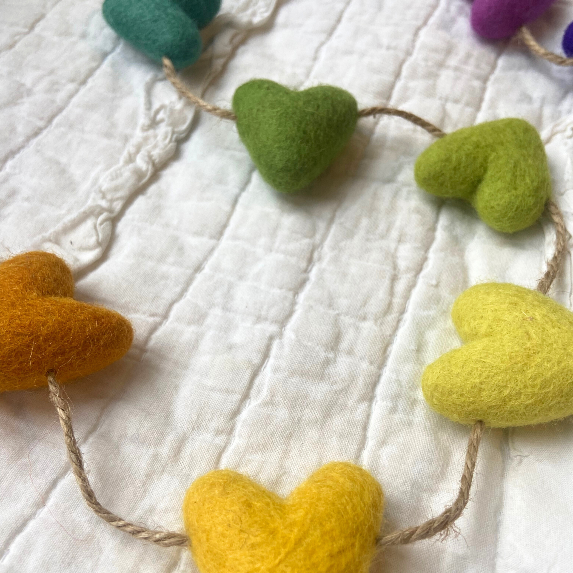 Rainbow Felted Wool Heart Garland 4ft-St.Patrick’s Day Decor