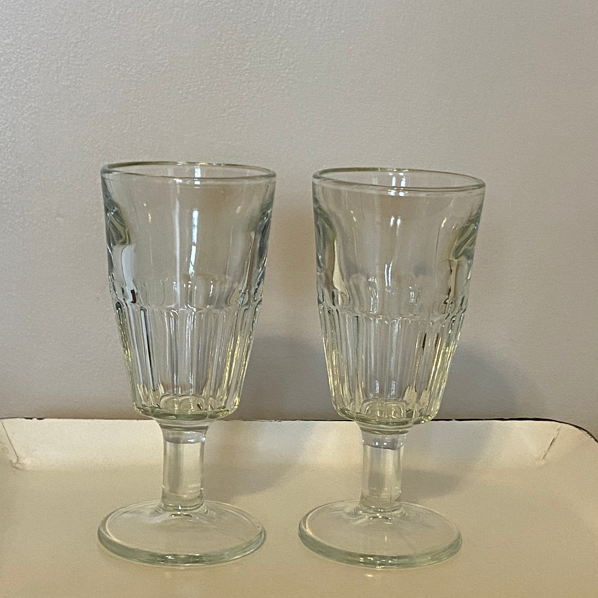 This sweet pair of vintage clear glass sundae glasses calls to mind old soda fountains, shared desserts, and simple treats enjoyed a little slower. Made from thick pressed glass, each glass stands about 7 inches tall with a graceful, fluted bowl and classic stem.